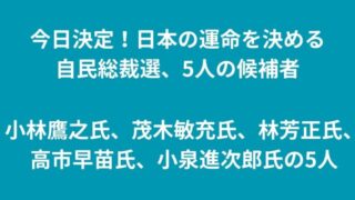 日本の運命を決めると言っても過言ではない、自民総裁選。5人の候補から今日新総裁が決まる。