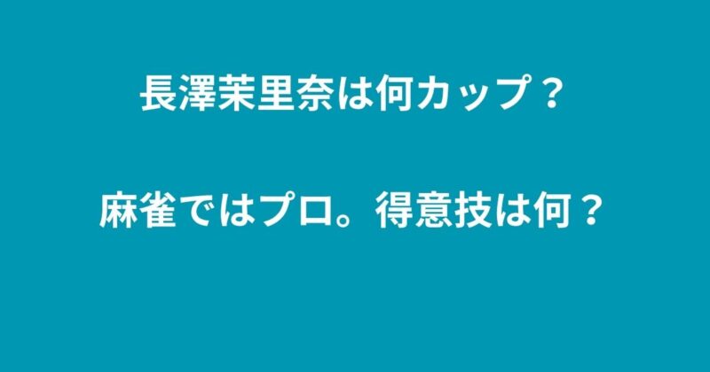 長澤茉里奈は何カップ?麻雀ではプロ。得意技は何?