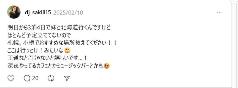 長戸彩喜さんと妹さんの北海道旅行エピソードは、Threads投稿が基になったものです。3泊4日の予定なし旅で、フォロワーにスポットを聞くほど楽しみにしていました。