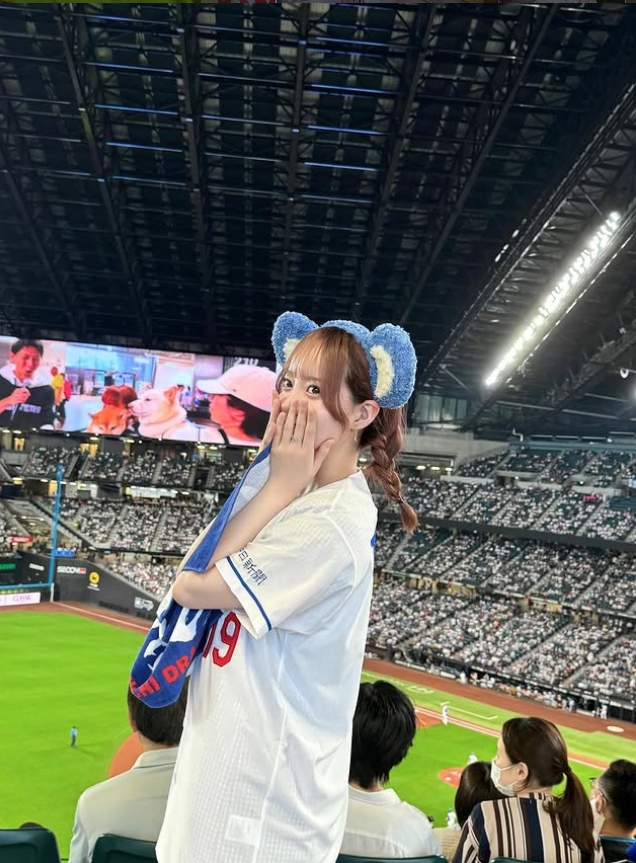 でも四葉さんの頭にはドアラのカチューシャを付けて、中日のユニホームを着てますよね
